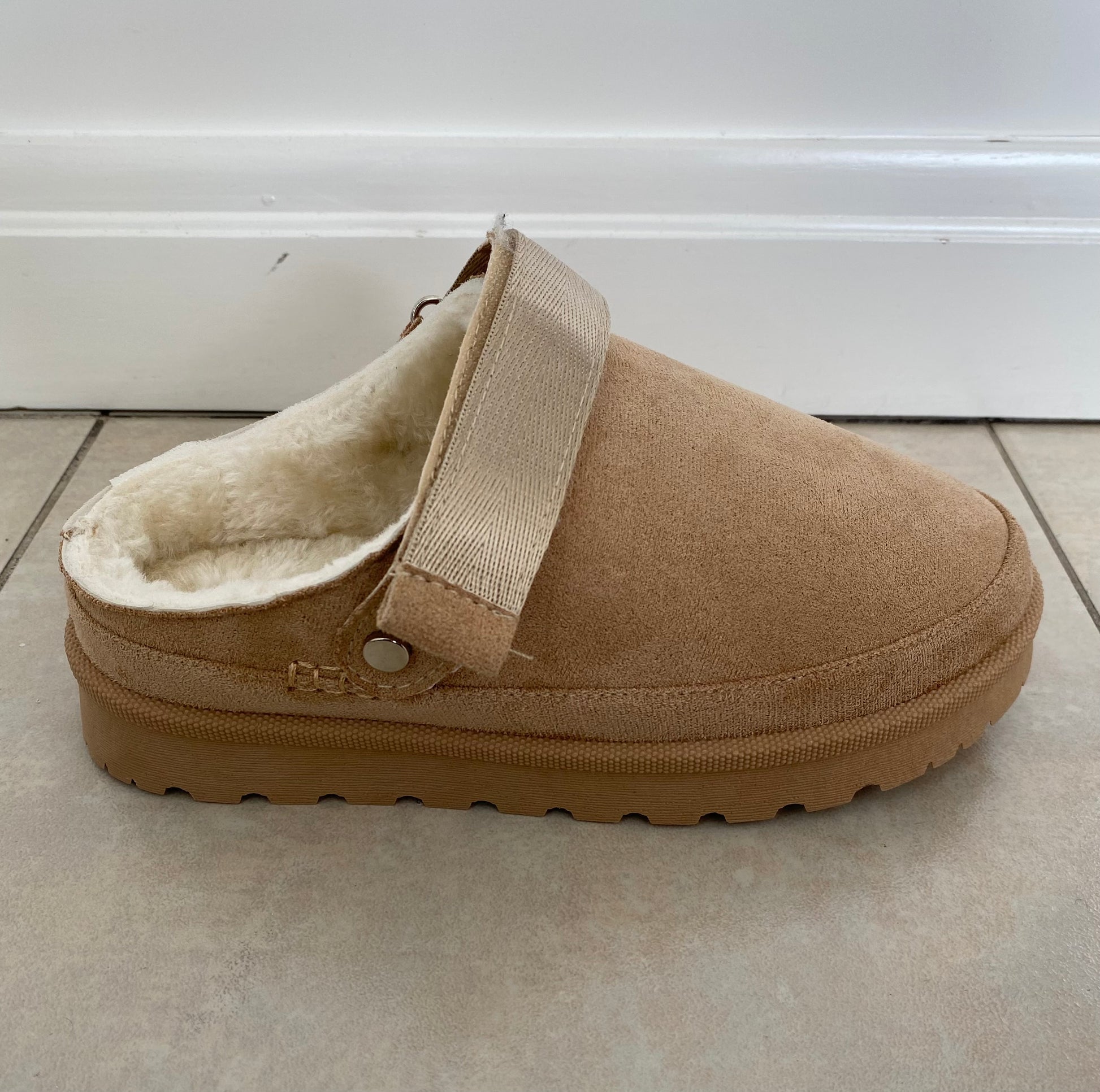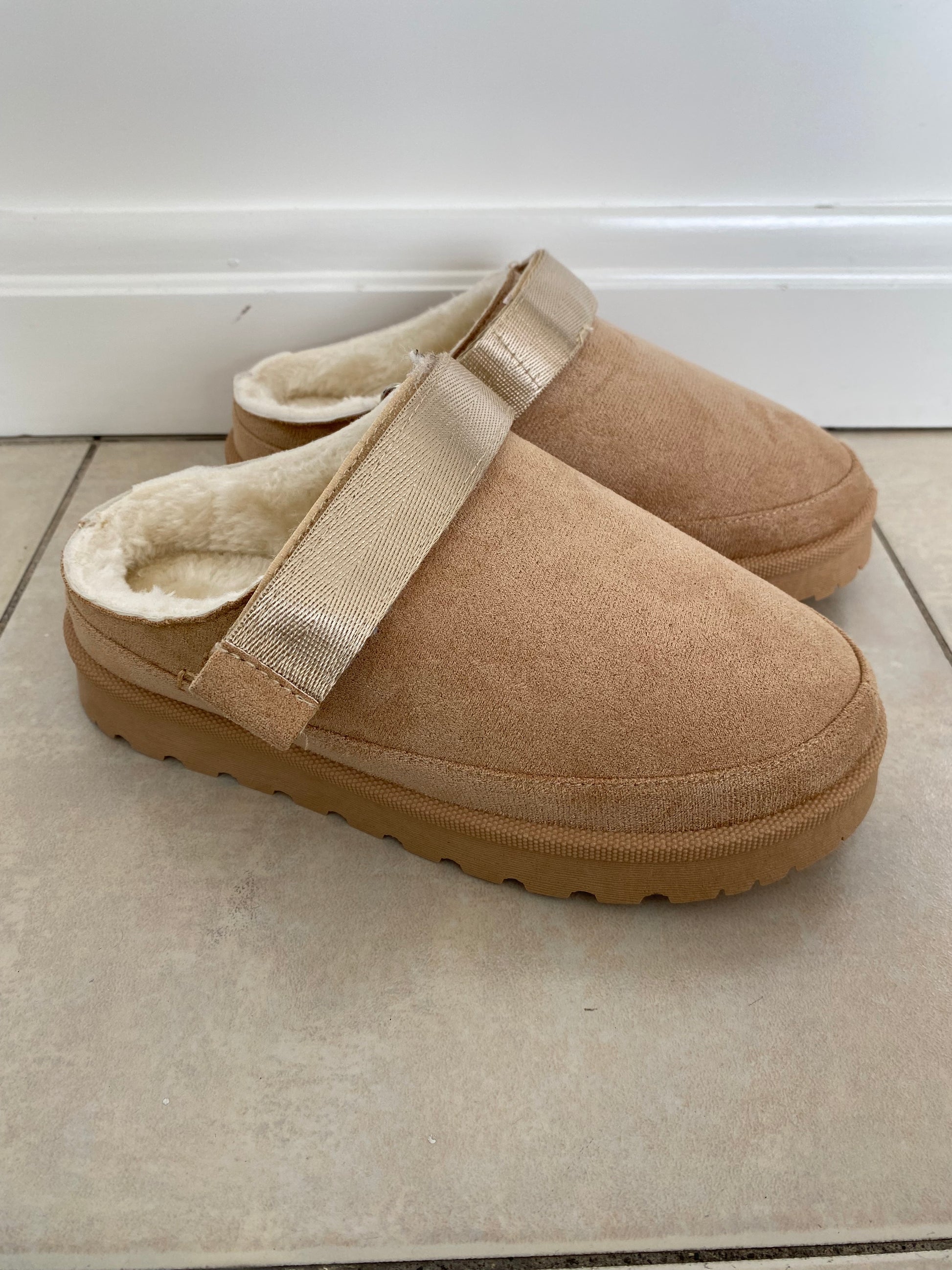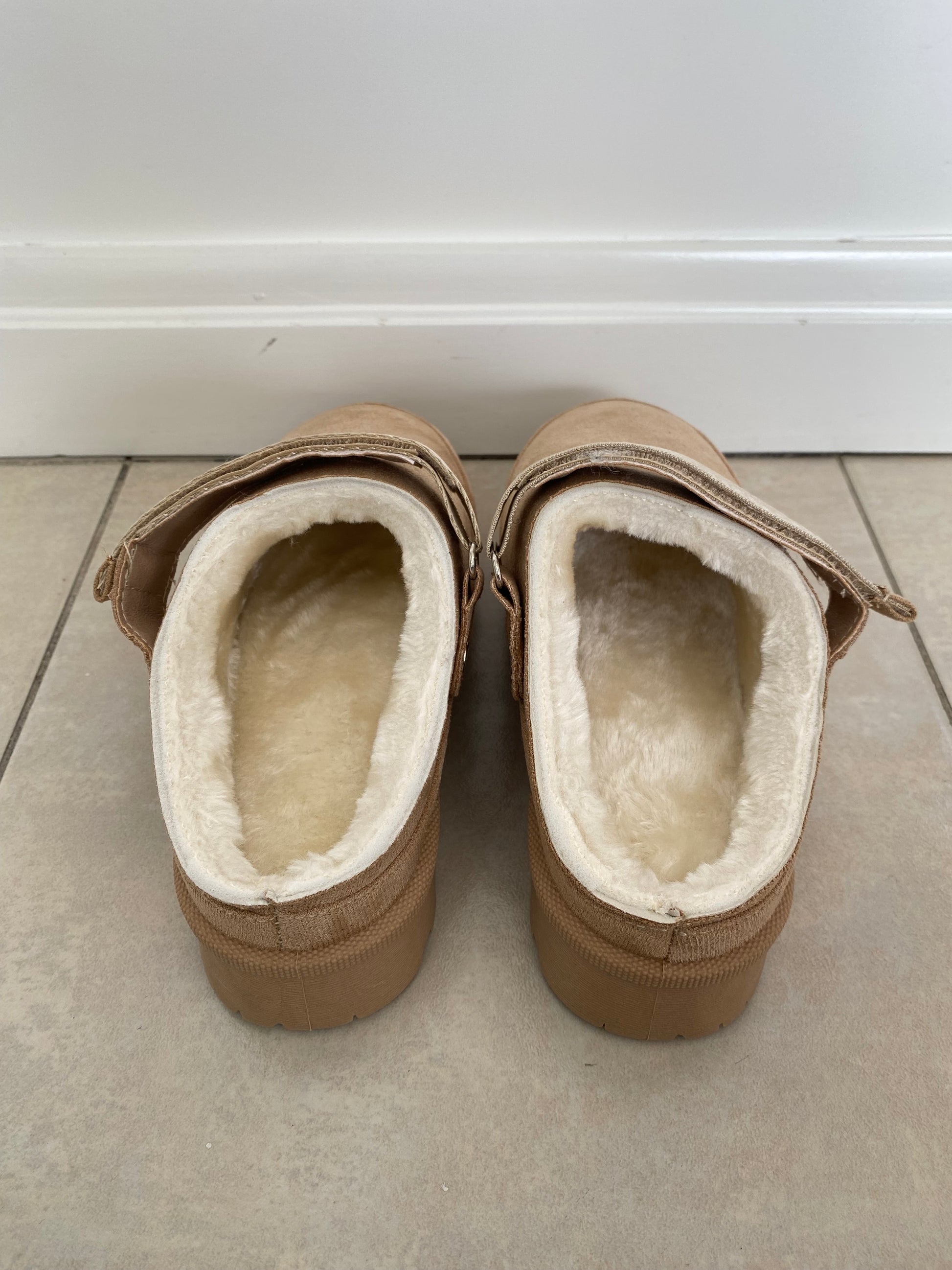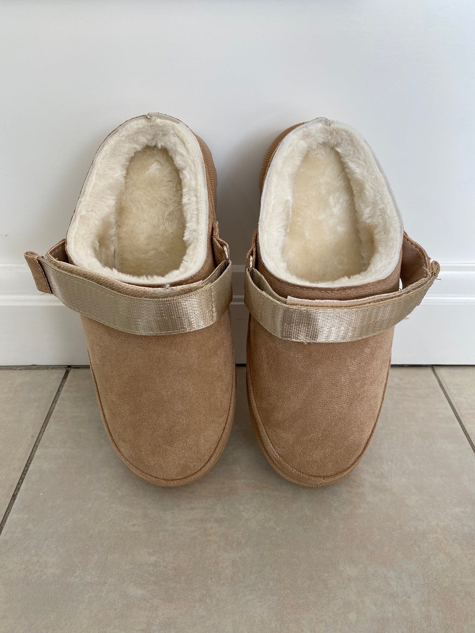 Botas color taupe, afelpadas por dentro.