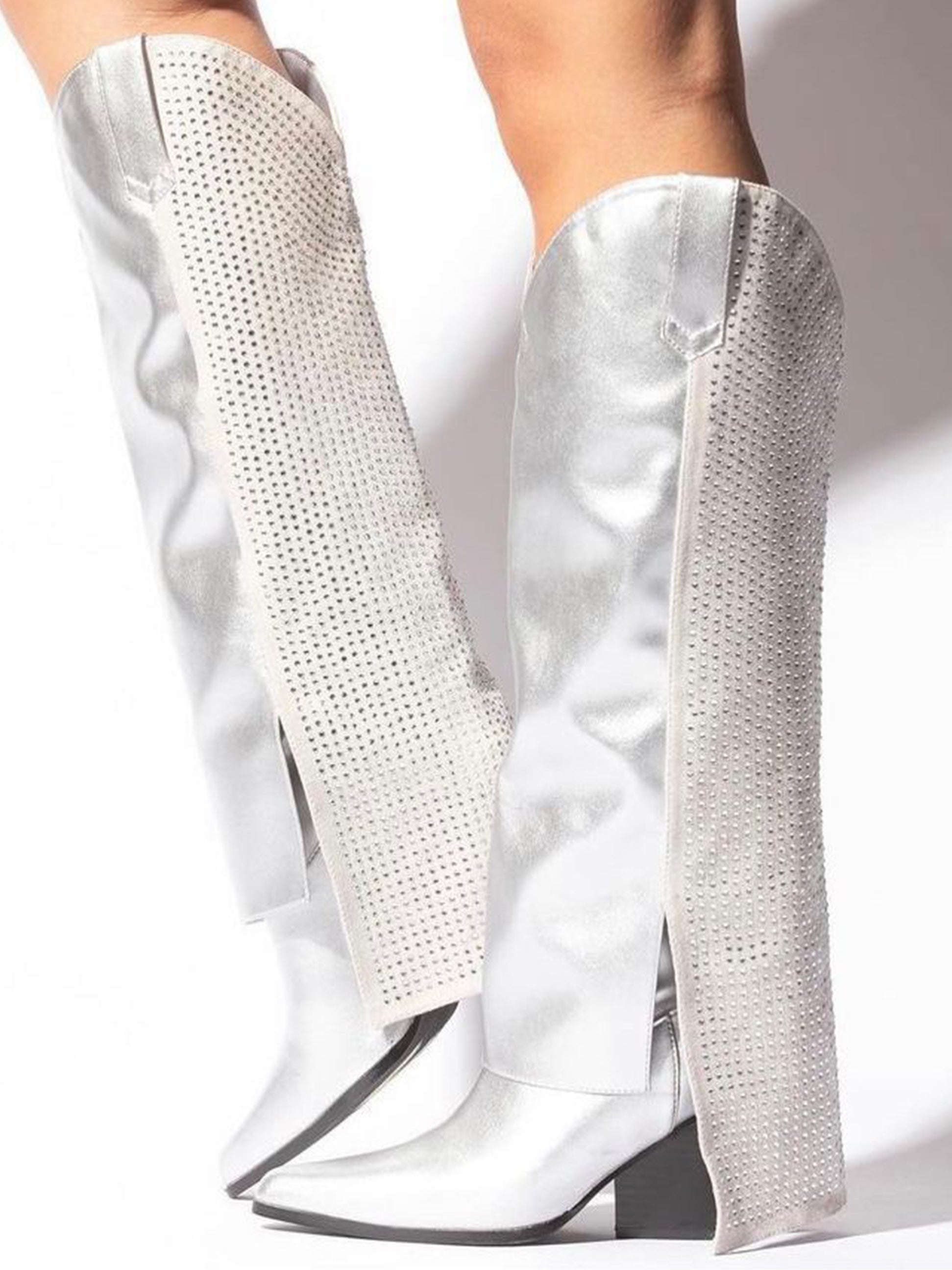 Botas largas color plata con pedrería.